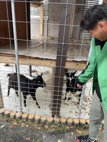 いきなりやぎが出迎えてくれました!えさやり体験ができるそうです!