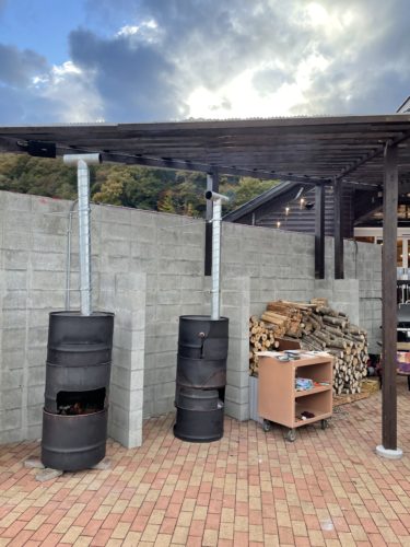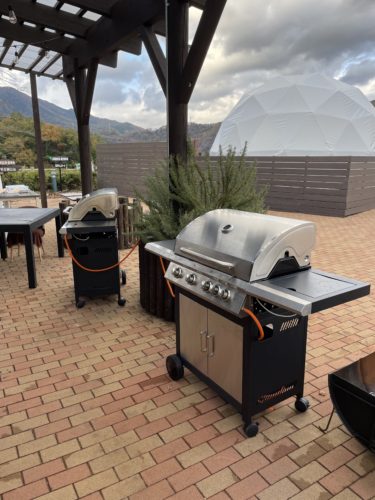 バーベキューを楽しめるスペースもありました!海外の映画とかでよく見る大きな機械が!たくさんステーキ焼けそうです!