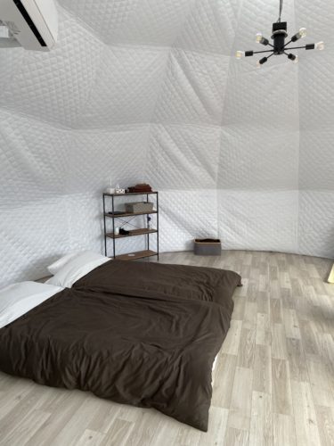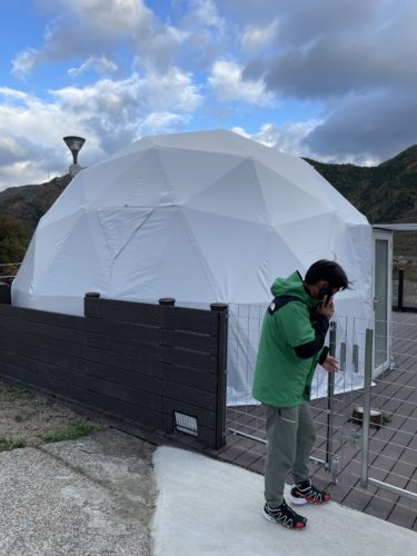 そしてグランピングのテントに向かいます。ドーム型の大きなテントですね~!