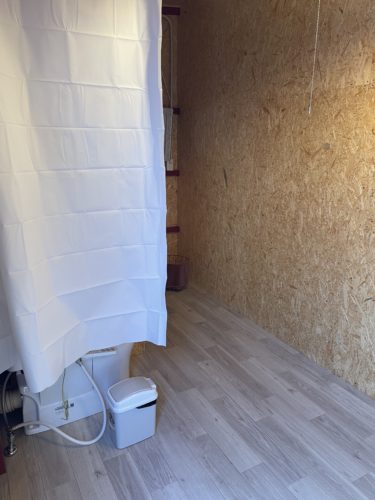 ドームテントのすぐ前にトイレとシャワーがありました!広々としています!