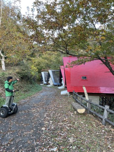 このセグウェイが案外簡単に乗ることができてびっくり!紅葉を楽しみながらゆっくりすすみます!