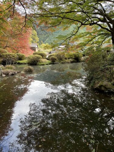さて、昨日ご紹介した筒賀の大イチョウから車で20分もかからない加計というところに一年に8日しか公開されない吉水園さんがあります。この日は秋の公開日の初日だということもあり伺ってきました。