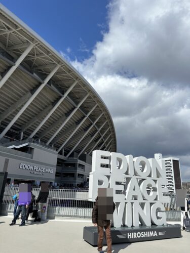 さて、ついに私にも新しいサッカースタジアムに伺う機会が巡ってきました。知人の方がチケットをお持ちで誘ってくださいました!サッカーのことはあまりよくわかっていなかったので自ら観戦することは今までなかったのですが、やはり新しく登場したエディオンピースウィング広島には一度は訪れたかったです。