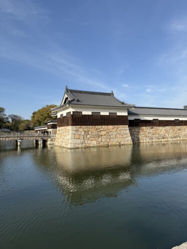 こんなに広いお堀があるお城がほかにあるのかは知らないのですが川が流れているくらい広いお堀です。