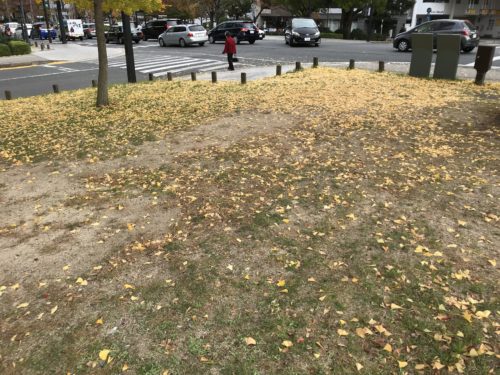 広島では筒賀の大イチョウがもうすでに葉が落ちてしまっていると聞いていますが、平和大通りの大きなイチョウの木は今が見ごろです!