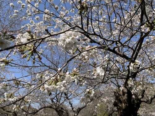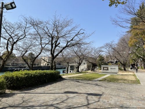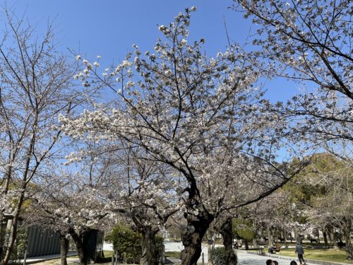 でもその中で毎年めちゃめちゃ先行して咲き誇る桜が2,3本あるんですよ~!それは平和公園の中に比較的新しくできたトイレのそばにある桜なんです。