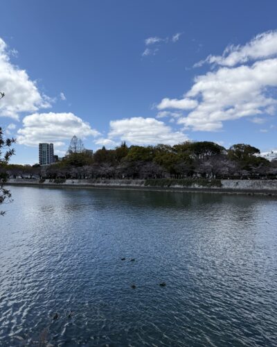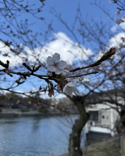あまりにも天気がいいので平和公園の開花は進んでいるかな~と見に行ってきました。パークサイドホテル広島から歩いて1分のところにある平和公園の川岸の桜はまだ3分咲きくらいでしょうか。