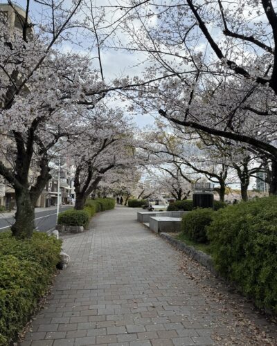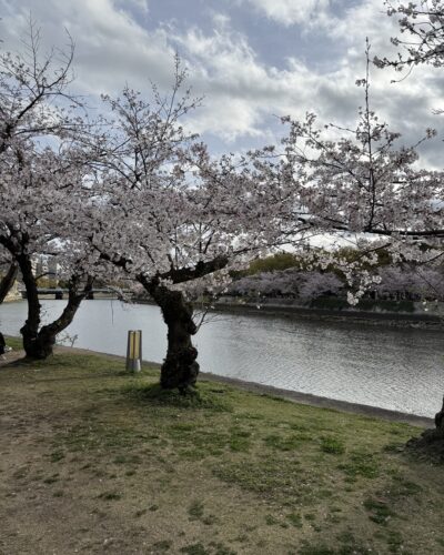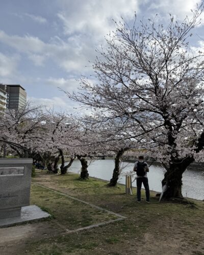 平和公園に流れる元安川の両岸に植えてある桜も満開を迎えていました。