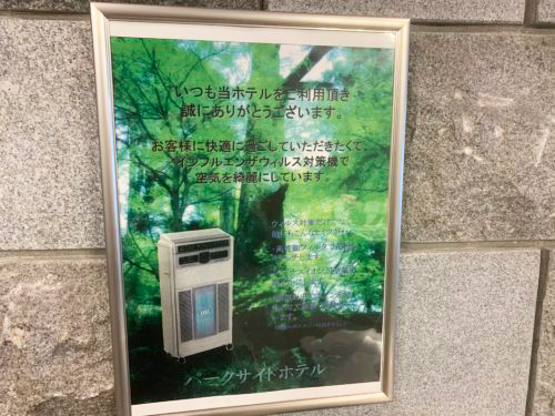 パークサイドホテル広島平和公園前では15年前からオゾン発生器を使い、客室、共用部などのオゾン発生器によります除菌、消臭対応を行っておりました。