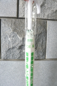 この傘は60センチのビニール傘で、ジャンプ傘(ボタンで開くタイプ)になっています。