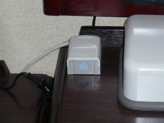 お部屋の机の上に↓のボックスをご用意しております。こちらにLANケーブルを差し込んで頂きます。