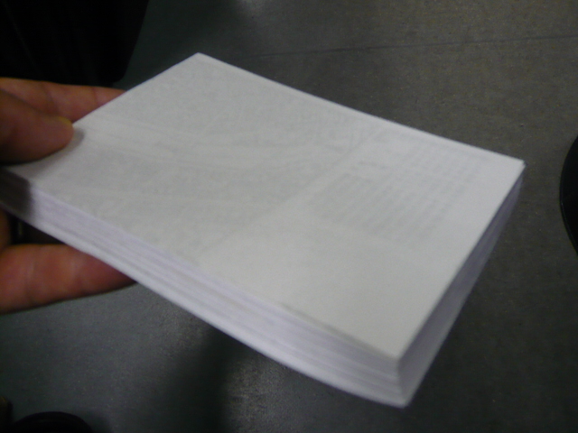 廃棄される紙を利用してこんなメモ帳を作っています。