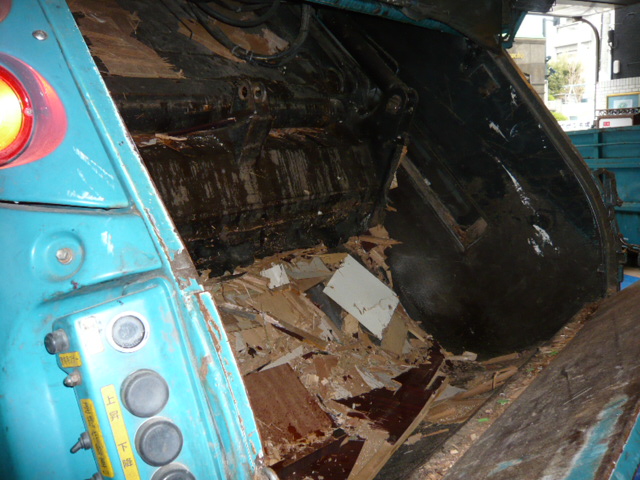 4トン車のトラックが何台も来ては、再生工場へ運んでいく