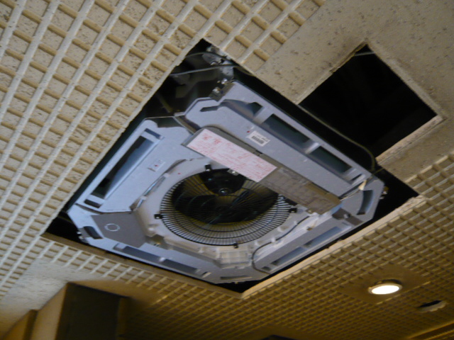 1Fのロビーには空調機が3台設置されました。