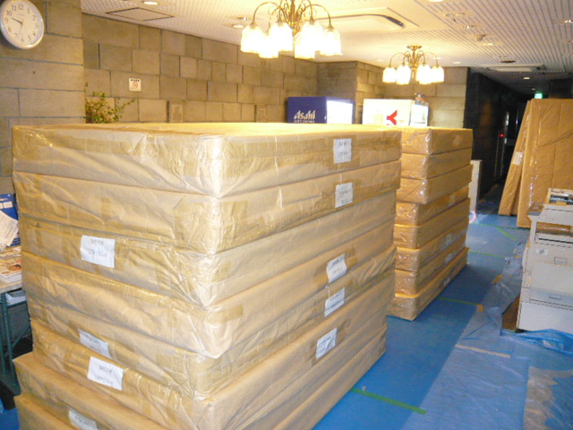 次々とベッドとマットレスが搬入されてきます。