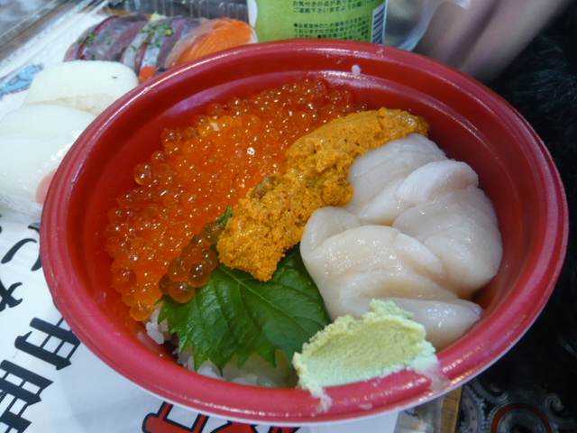 私はいくらとウニ、そして貝柱の丼ぶりを購入!