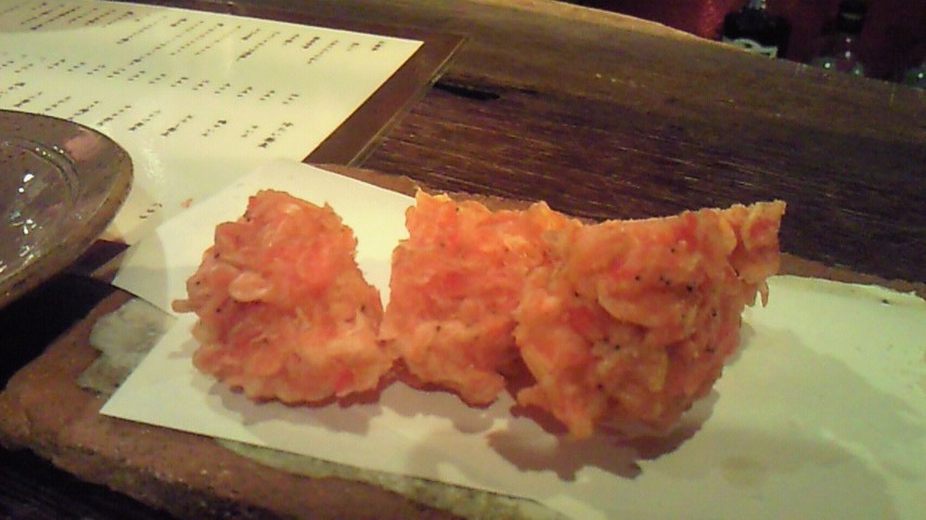 さくらエビのかき揚げなので、さくらエビが入っているのですが、