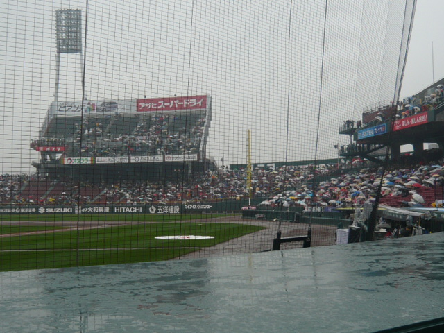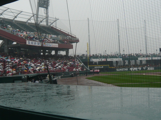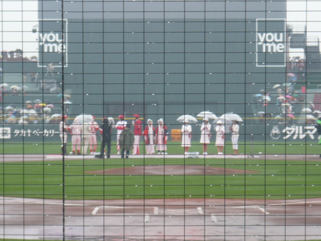 雨の中でも、たくさんの方が傘をさして観戦しておられました。