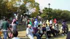 途中の桜ロードの脇で、ブルシートをひいて花見を