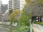 この平和公園の元安側沿いの桜並木が一斉に開花すると