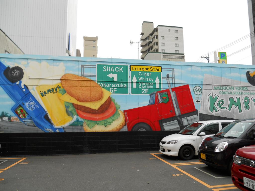 「あれ、ホテルが見当たらないんですが、、、、今見えるのが壁に書かれた大きな絵です。」