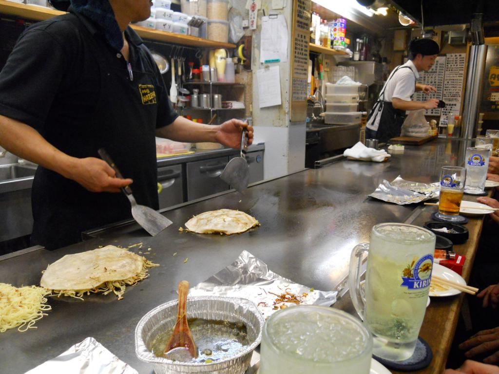 この大きな鉄板の上で、焼き上げる焼きラーメンは