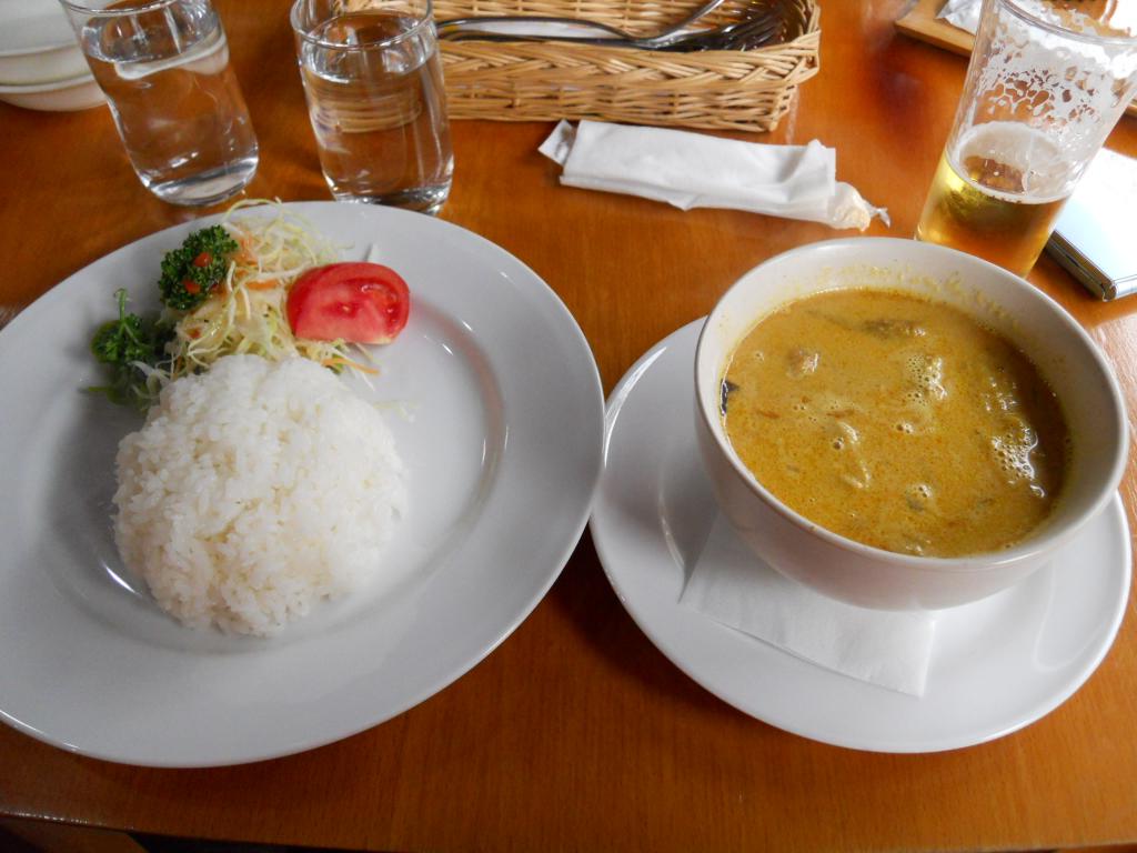 最初はスプーンをカレーにつけて、ごはんをすくっていただきました。