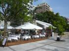 リバークルーズの桟橋の付近に新しい川辺のカフェが