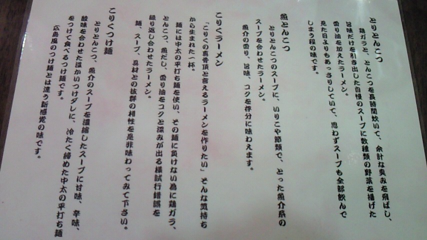 【広島のラーメン】 行ってきました!”麺の家 こりく” 2009/04/09 3:41 pm