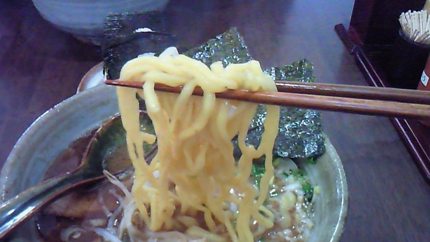 麺は太麺で、ちょっとだけ平たくしてある感じです。