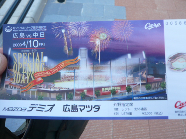 【広島の観光】 新広島市民球場開幕戦に行ってきました! 〜なんとVIPな有名人に会いました!〜2009/04/11 1:00 pm