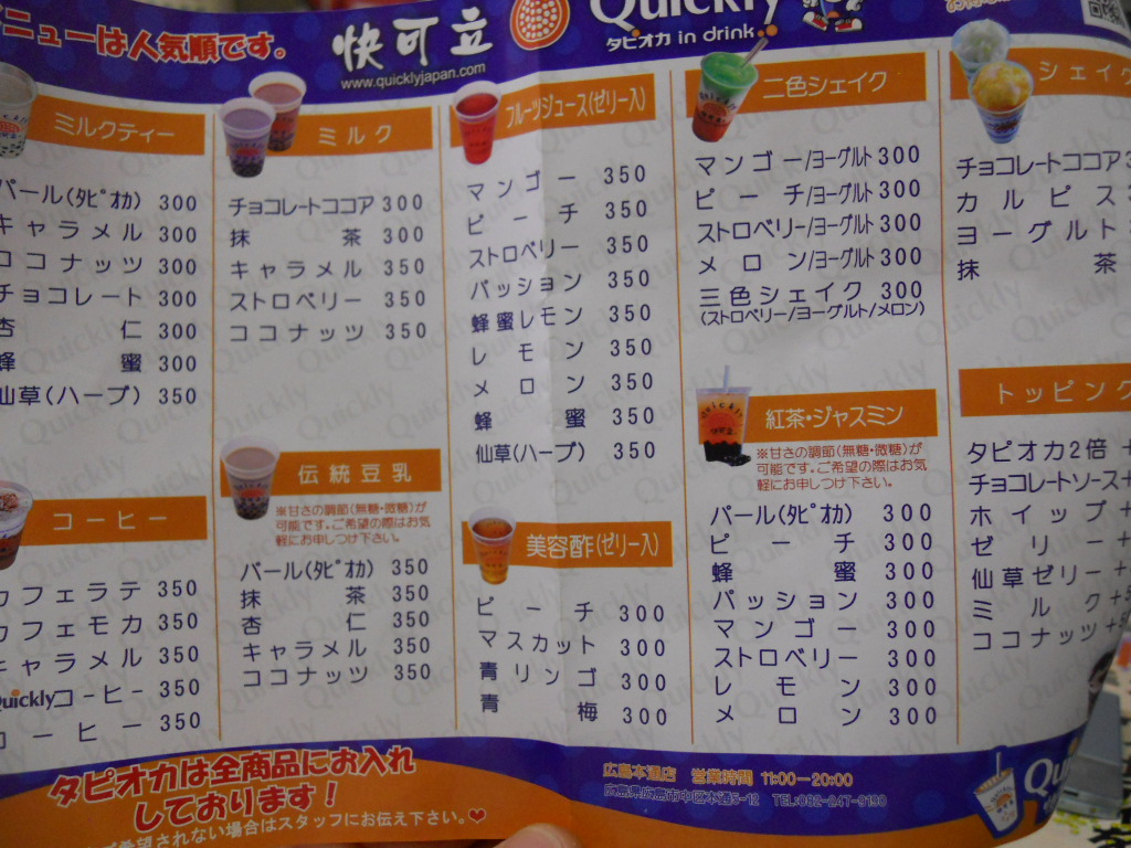 先日ご紹介しましたタピオカドリンクのお店quicklyさんに