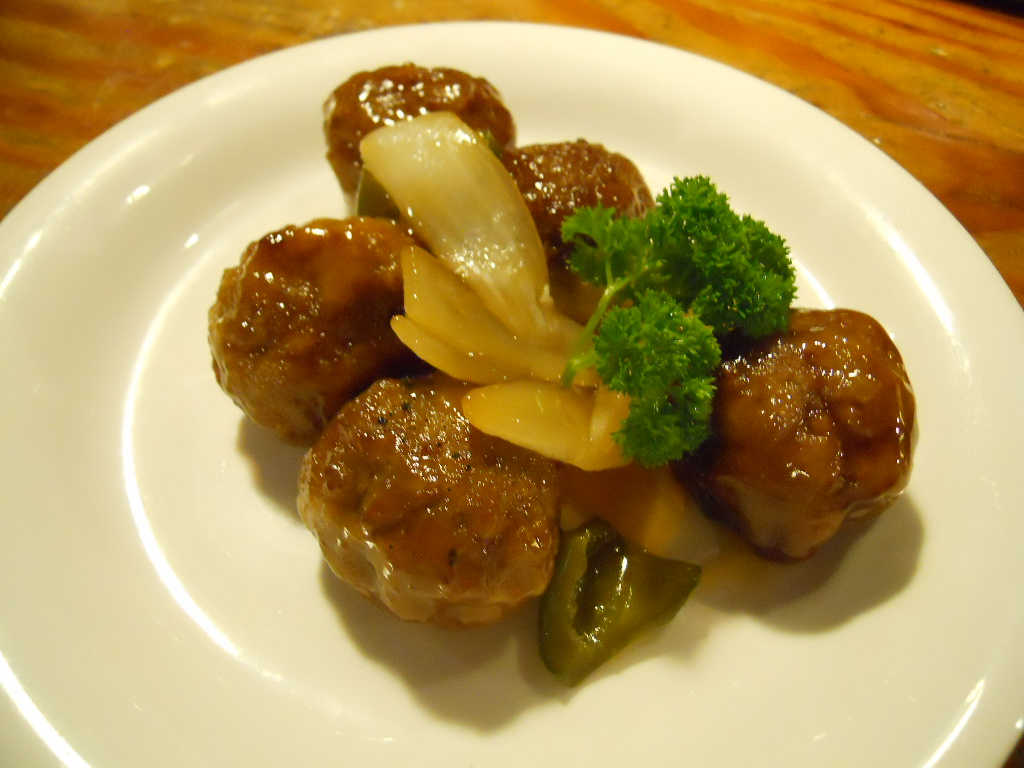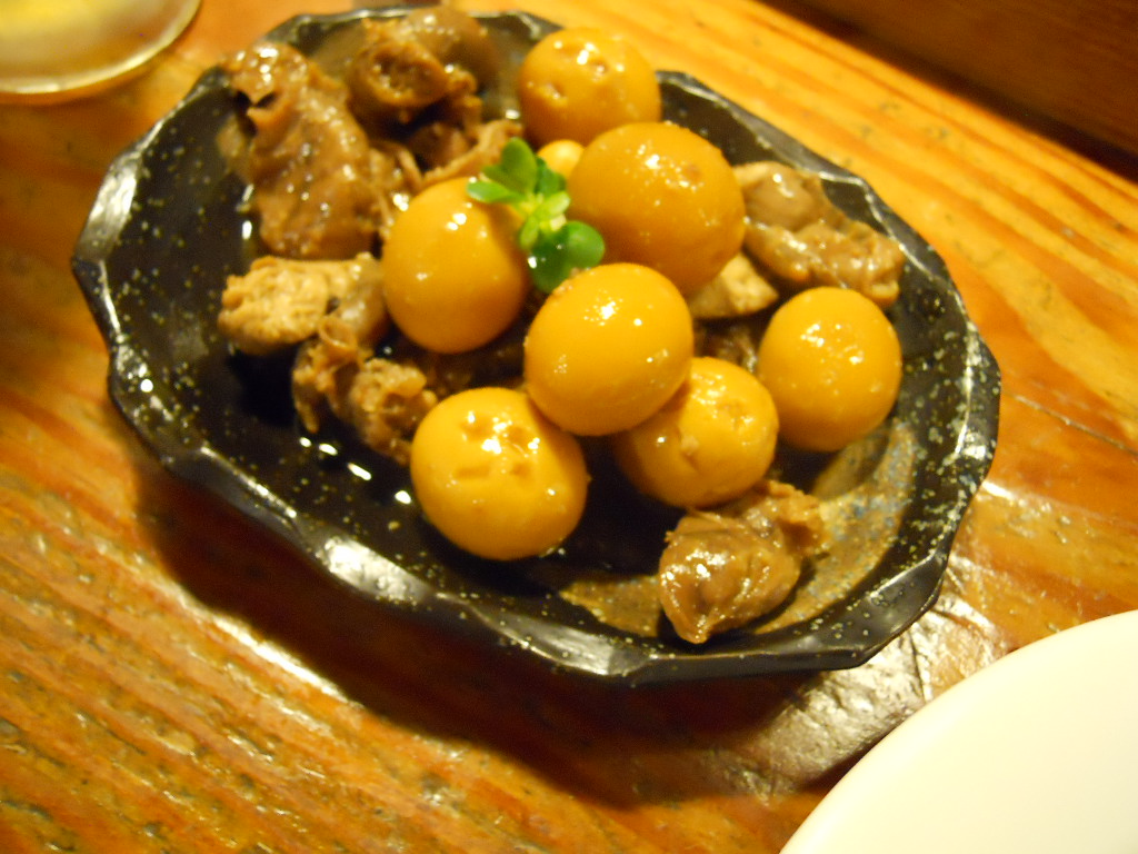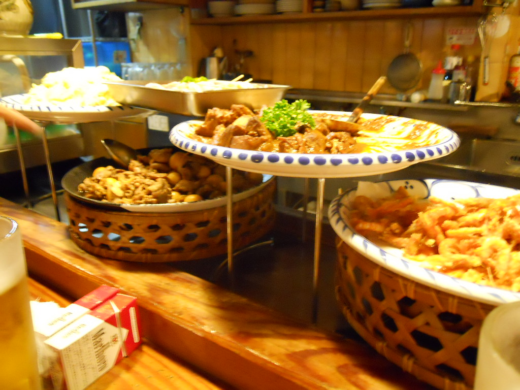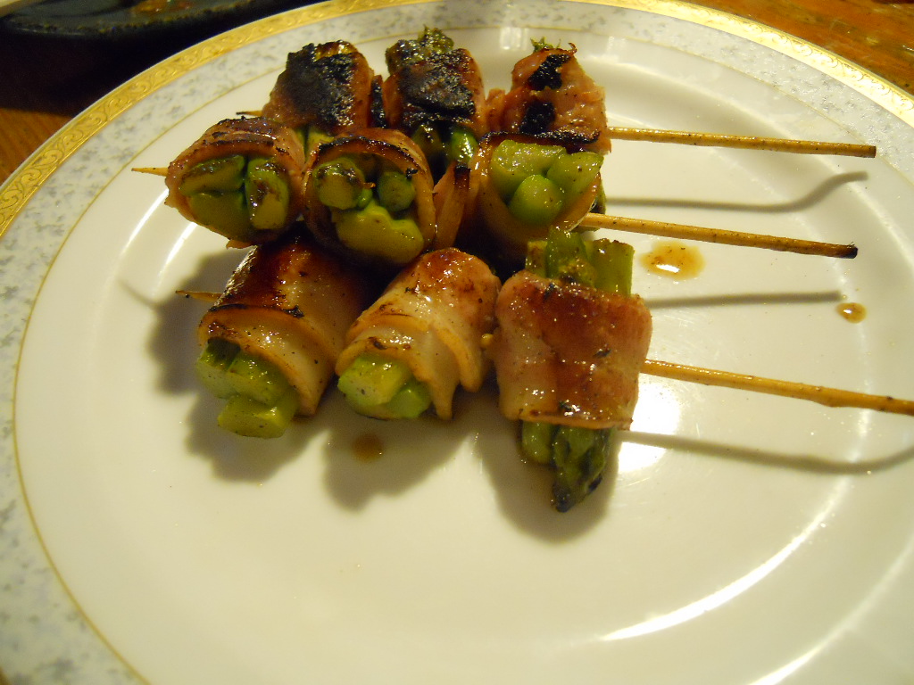 アスパラベーコン、とりもつ煮、肉団子、小エビの唐揚げ、