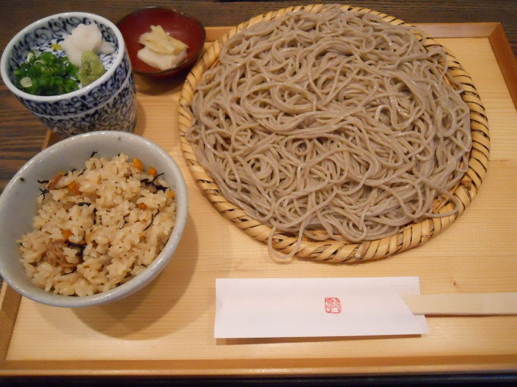 ということで、ざるそばの大盛りと季節セットを頼みました。