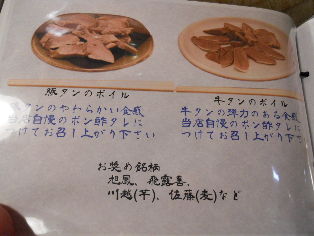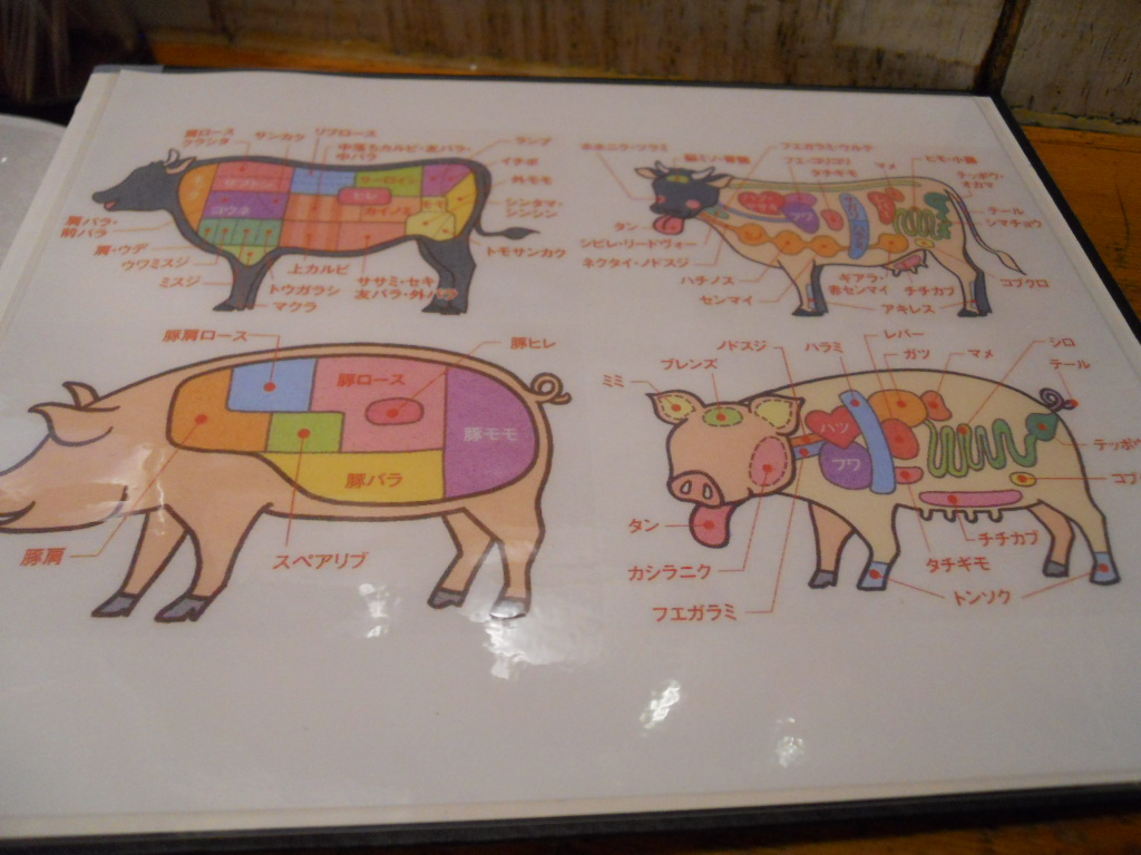めくると、牛と豚の部位の説明書きが書いてあります。