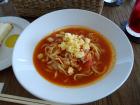 今日のランチはポークビーンズ生パスタと、クラムチャウダーです。