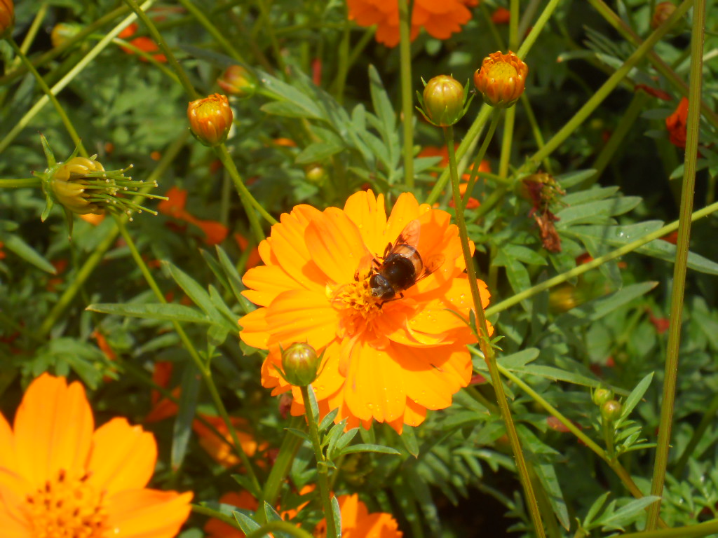 みつばちも蜜をすいにきています。