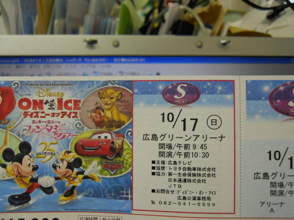 ディズニーオンアイス広島公演のチケーット!