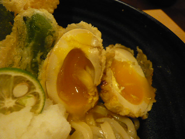 天ぷらがのっていたのですが、半熟卵の天ぷらも!