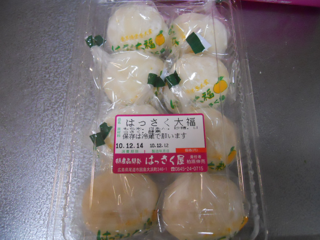 ぜひ広島の特産品、はっさくを使ったはっさく大福を