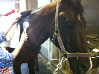 お馬さんをなでなでさせてもらいました。とってもおとなしい
