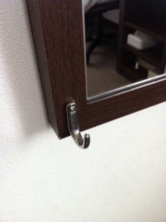 その姿見に、靴べらを設置させていただいておりました。
