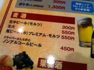 さて、入ってメニューを見ていきなり驚いたのが、生ビールの安さ!