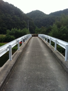 このかんばんのすぐそばに橋がありますので、そちらを渡ります。