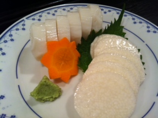 こちら、見た感じでは普通の蒲鉾かなと思いますよね。(手前は山芋です)