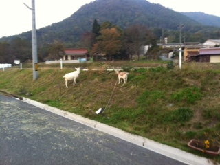 やぎさんたちが、なんとカドーレの前に放されていました。