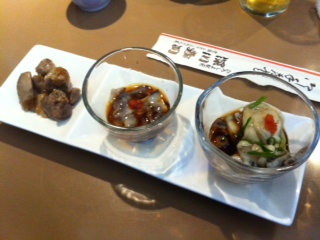 お店にはいったのはいいのですが、初めてだったのでおまかせでおつまみをお願いしました。