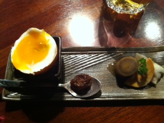 こちらの卵の燻製とごぼうとアナゴのマリネ、あん肝の燻製もたまらなかったですね〜!