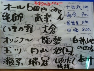 この日は日本酒フェアだったので、日本酒がオール500円!