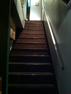階段をあがって、お店は2Fになります。